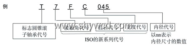 ISO355所規定的公制系列的圓錐滾子軸承中, 有不依據以往所使用的3xx尺寸系列的新尺寸。其中一部分記載于尺寸表。外圈寬度、外圈滾道的小端面直徑及接觸角與ISO的規定一致、內圈組件和外圈均具有*際互換性。其型號不同于以往的公制系列,構成如下。