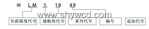 公制系列的中錐角型軸承及大錐角形軸承, 分別將接觸角代號C和D記于內徑代號的后面。普通錐角軸承不標記接觸角代號、中錐角型軸承主要用于汽車差動裝置的小齒輪軸。
