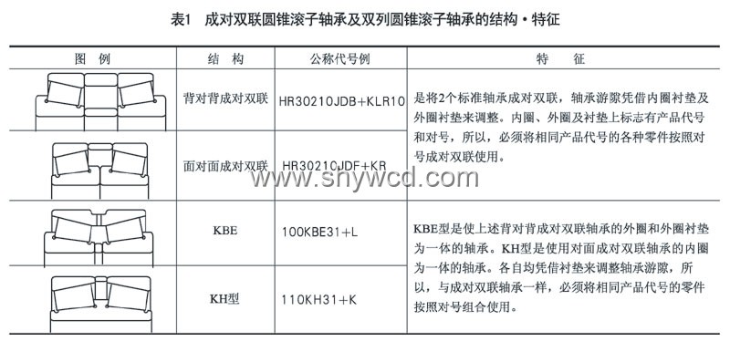 成對雙聯圓錐滾子軸承及雙列圓錐滾子軸承的結構、特征